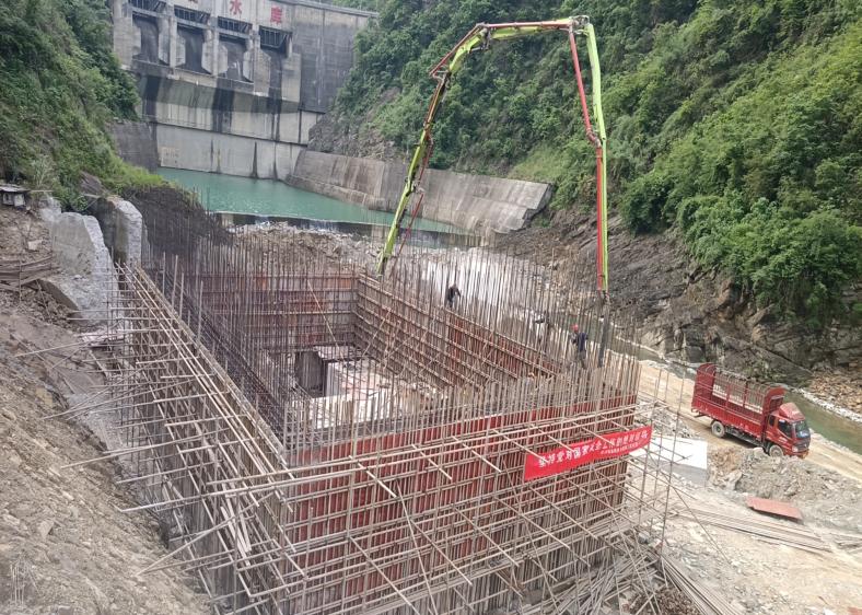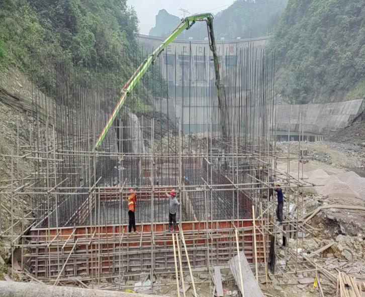 彭水縣三江口水利樞紐生態(tài)流量設(shè)施改造工程土建項目施工現(xiàn)場