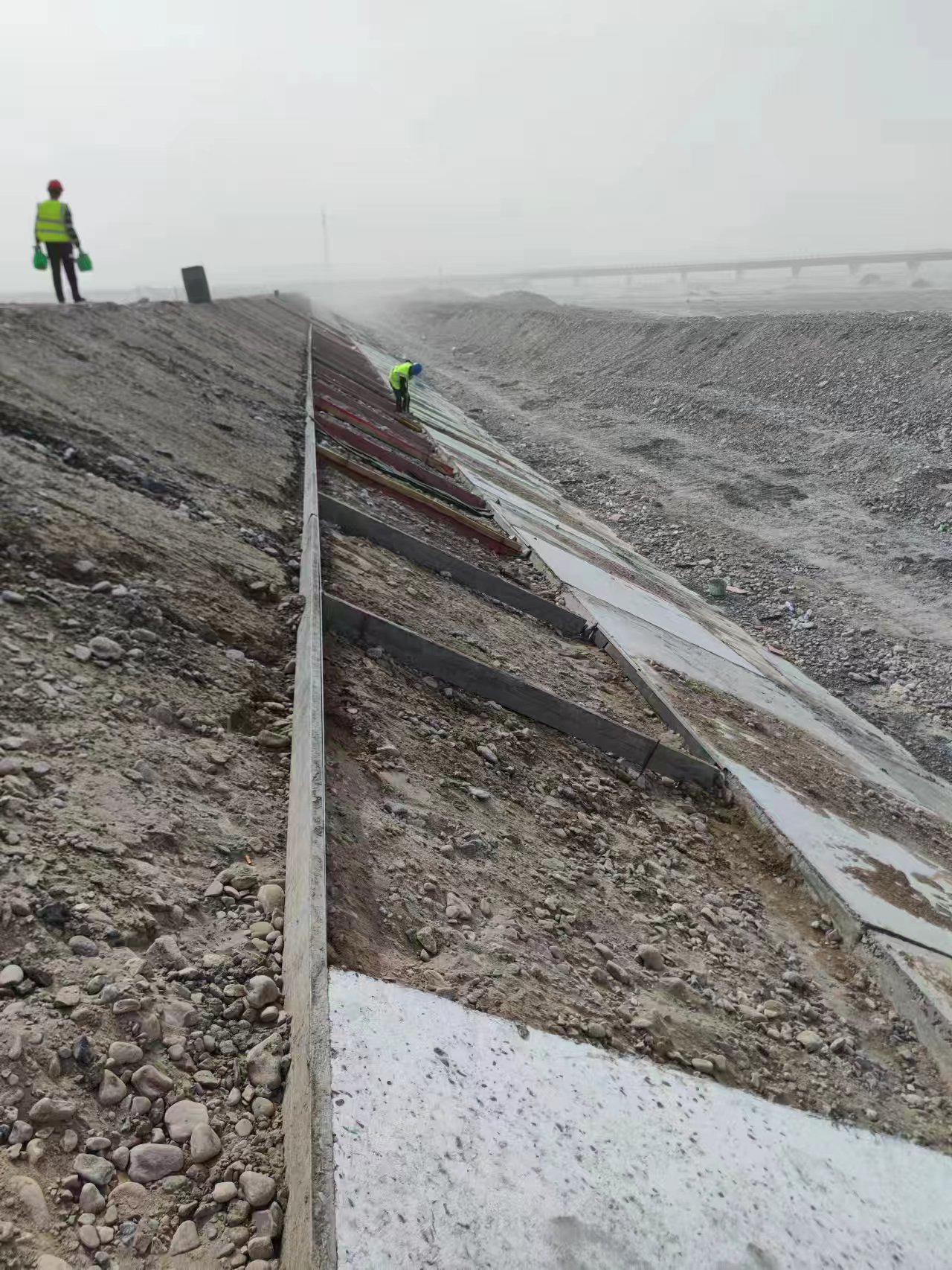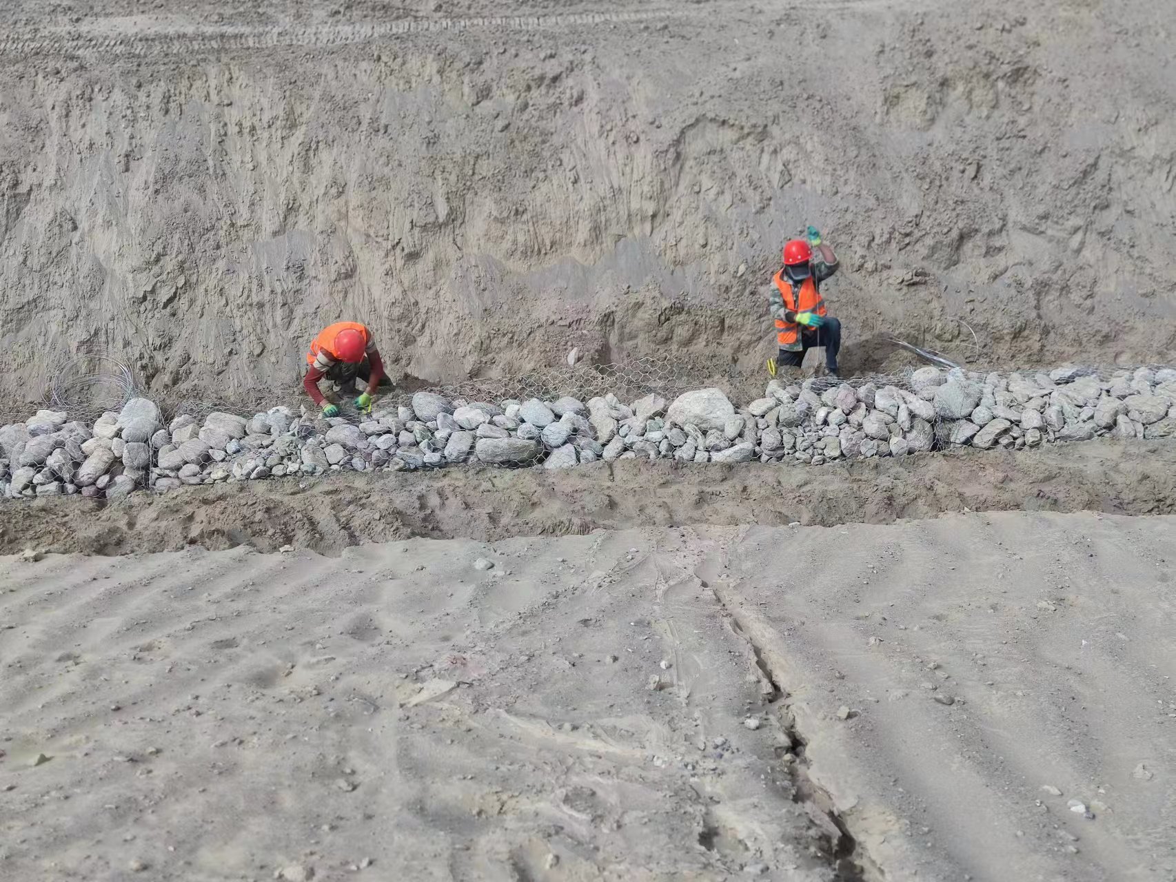 新疆和田地區(qū)民豐縣防洪堤工程施工現(xiàn)場